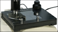 A large gliding stage for use with long arm stereomicroscopes. Measuring 123 x 123mm, it moves freely in any required direction. Can also be fitted with a transmitted light unit.