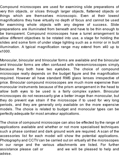 For expert advice please telephone and speak to one of our technical advisors. They would be pleased to assist. We are one of the largest independent microscopy supply companies in Europe. For those choosing a microscope for the first time we offer the following advice.